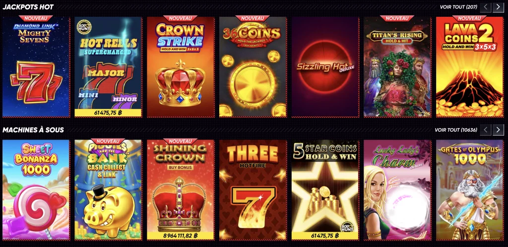 Les machines à sous constituent le cœur de l’offre QuickWin, avec une sélection pensée pour couvrir toutes les préférences. Les joueurs y retrouvent des slots classiques, des titres multi-lignes, des jackpots progressifs et des jeux intégrant des fonctionnalités avancées comme les free spins, les multiplicateurs ou les mécaniques dynamiques. L’accent est mis sur des visuels haute définition, des taux de redistribution compétitifs et des environnements thématiques immersifs. Ce segment est idéal pour découvrir des sessions rapides, variées et accessibles, tout en profitant de fonctionnalités conçues pour maximiser le plaisir de jeu.